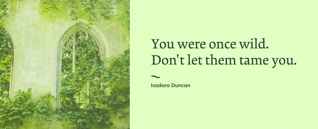 In today’s ‘Inspiring Quote’ we hear from Isadora Duncan a professional dancer who rewrote traditional ballet who points out that ‘you were once wild. Don’t let them tame you.”